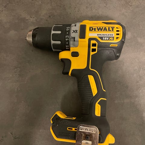 Kraftig drill fra DeWalt. Pent brukt, beltekrok medfølger. Kan også brukes som arbeidslys takket være en innstilling som gjør at den lyser i 20 minutter uten å måtte berøres. Kun maskin.
