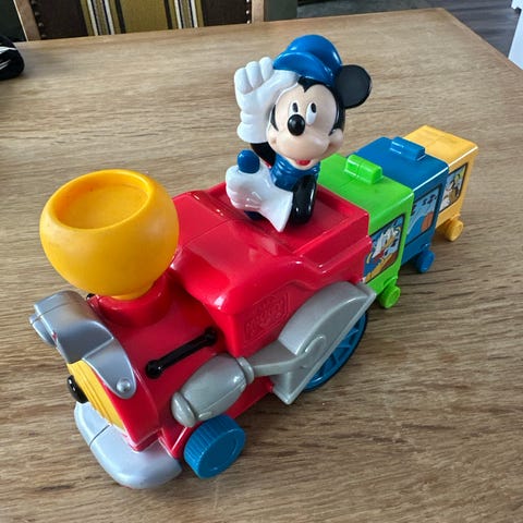 Et lite leketog fra diney i plast. Ca fem cm langt