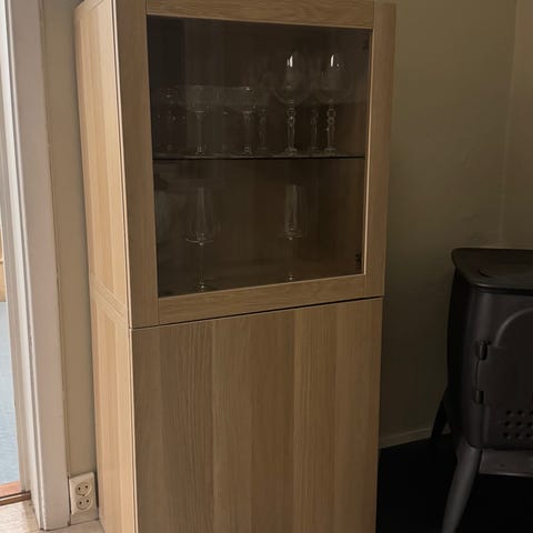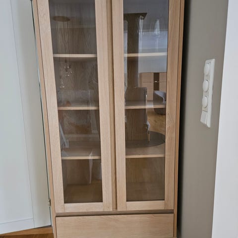 Relativt nytt vitrineskap i naturlig eik. Selges grunnet flytting.