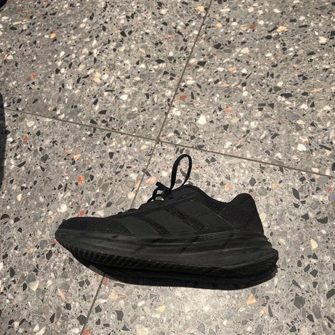 Skoene har overdel i pustende meshmateriale i svart med hvite Adidas-striper på sidene. Mellomsålen er relativt tykk for demping, og yttersålen har gummimønster for grep mot underlaget. Modellen er egnet til løping og annen lett trening på asfalt eller tredemølle.