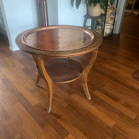 Røkebord i Eik med hamret kobberplate i god stand