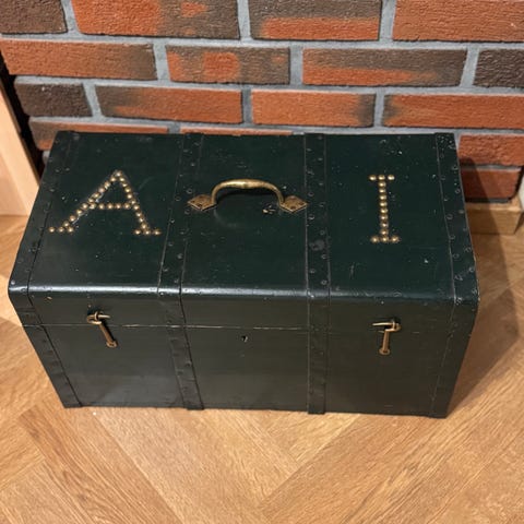 Kiste på bredexhøydexdybde 78x50x50cm, perfekt til kostymer og utkledningstøy for eksempel😊 Godt brukt, men helt inntakt. Veier lite så lett å flytte på. Ser ut som en skikkelig skattekiste.
