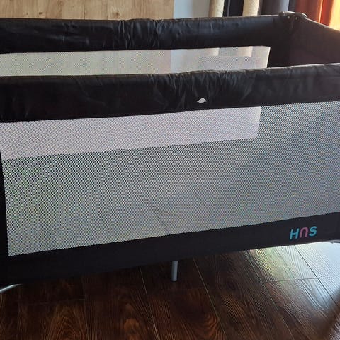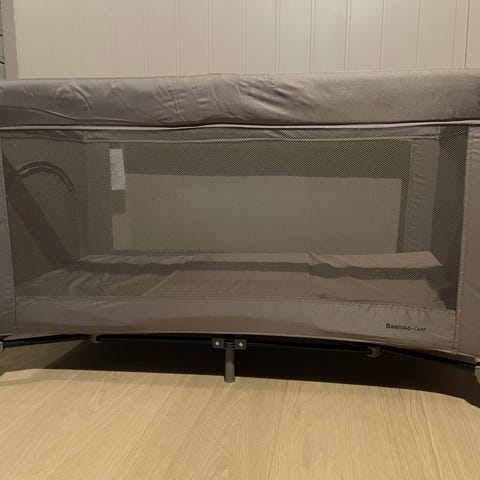 Brukt kun en gang. Kinderkraft reiseseng i grå tekstil. Sengen har nettingpaneler på sidene som gir innsyn og lufting, samt en åpning med glidelås i den ene kortsiden som kan brettes ned. Stabil ramme med plastforsterkede hjørner og ben. Liggeflaten består av sammenleggbar madrassbunn som følger med sengen. Egnet som ekstra seng til baby og småbarn på reise eller som reserveseng hjemme.
