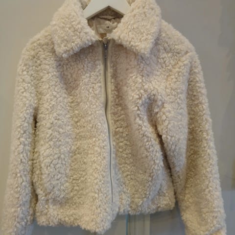 H&M jakke barn str. 134/140 beige fuskepels jente