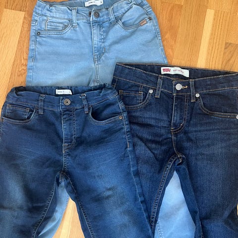 4 stk. jeans til jente. Varierende størrelser fra 122-128. I god stand.