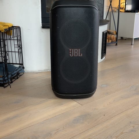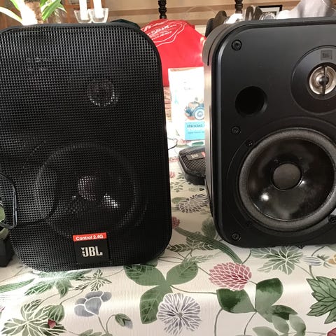 Solide høyttalere fra velrenommerte JBL. Liten skjønnhetsfeil på den ene høyttaleren.