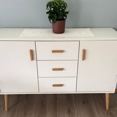 Selger en pent brukt skjenk. Øverste skuffen kan bare åpnes halvveis, ellers i fin stand.