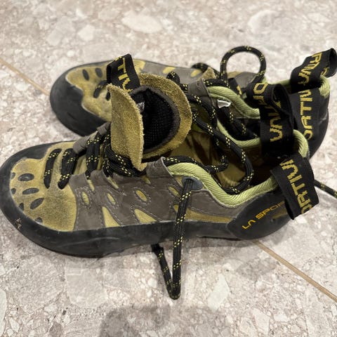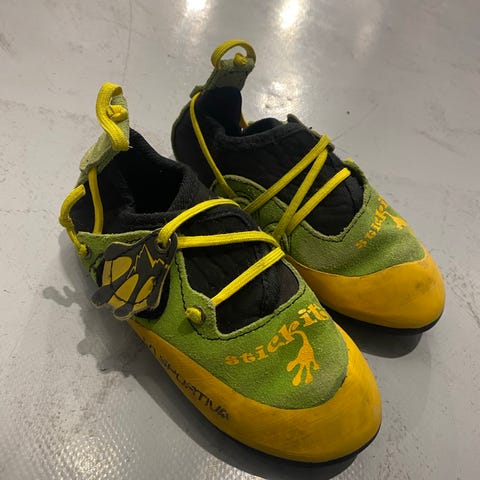 Brukte klatresko har jeg erfart er en fordel da de er ferdig myknet og barnet opplever skoene som mer komfortable og man unngår gnagsår.