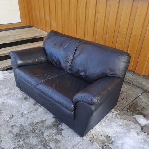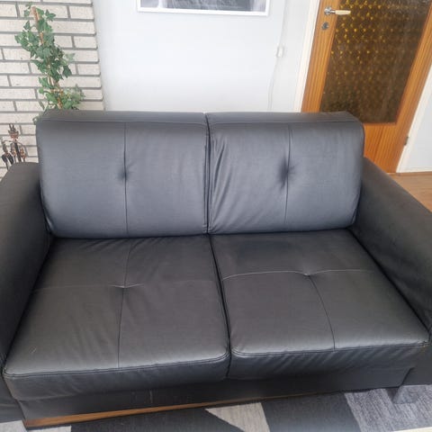 IKEA sofa med puff svart skinn