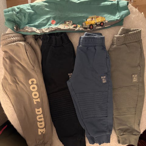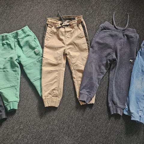 Zara joggebukser for barn i str. 92, unisex. Pakken består av flere bukser i ulike farger. Buksene er laget i polyester og har behagelig passform egnet til hverdagsbruk og lek. Elastisk linning med snøring på flere av modellene gir justerbar midje. Passer godt som basisplagg i barnegarderoben.