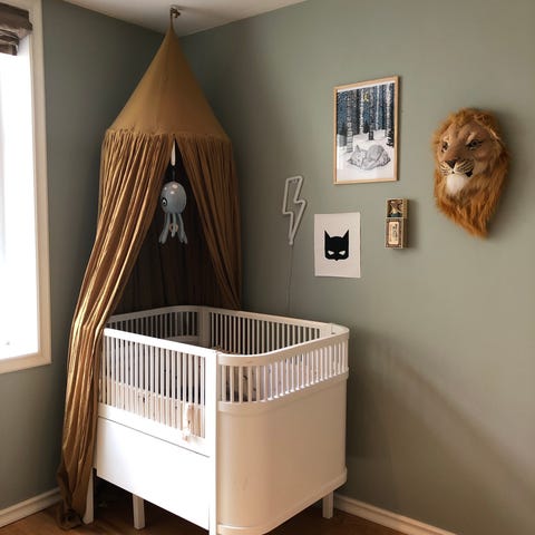 Beige Nadine sengehimmel fra Jotex i vasket økologisk bomullskvalitet. Fargen er lys beige. Bomullsgarnet er av grov type, og gir stoffet en eksklusiv look som minner om lin. Sengehimmelen henges opp med en enkel krok og har en ring i tre som stoffet knytes fast i innvendig.
