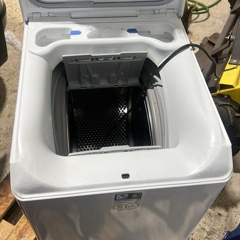 AEG frontmatet vaskemaskin i hvit utførelse. Maskinen har frontåpning med rund dør og kontrollpanel med dreiehjul og display på toppen av fronten. Egnet for plassering frittstående på gulv i vaskerom, bad eller lignende. Tilkoblingsslange for avløp følger med, slik det fremgår av bildene. Maskinen har standard rektangulær form med flat topp som kan brukes som avlastningsflate. Ytterligere tekniske spesifikasjoner som kapasitet, energiklasse og mål er ikke oppgitt.