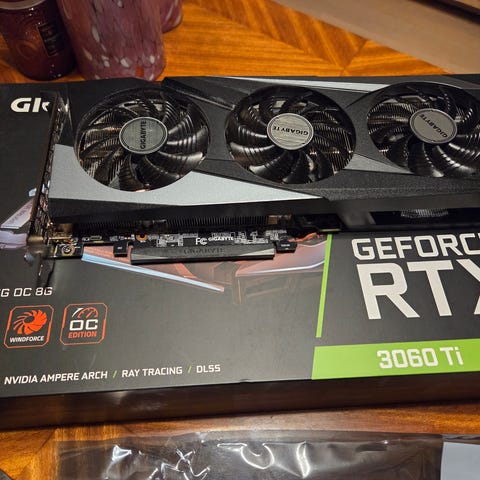 Skjermkortet er basert på Nvidia GeForce RTX 3060 Ti GPU og har 8 GB GDDR6-minne. Modellen er Zotac Gaming Twin Edge OC, som leveres med dobbel viftekjøler. Kortet bruker PCI Express-grensesnitt og har flere videoutganger, inkludert HDMI og DisplayPort (se bilder for nøyaktig portoppsett).