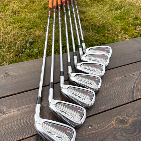 TaylorMade jernsett Tour Preferred fra 3 til P. Køllene har stålskaft og P-4 er MC og har 1sesong gamle Pride-grep. 3er er CB, den har jeg ikke brukt stort. Passer til deg som ha god hastighet og vil stabile lange jernslag. Settet har jeg kjøpt som den er brukt og hadde glede av den lenge. Ved 5ern mangler det en liten plastbit, men det betydde ikke noe for funksjonen. Kan sikkert fikses lett hos Proen, hvis det måtte være. Jeg selger den fordi jeg gikk over til Custom fit etter hvert, men denne her er fremdeles helt supert.