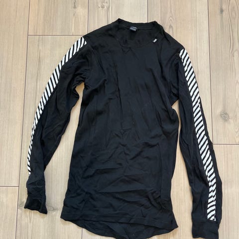 Skins langermet løpetrøye for herre i størrelse M. Trøyen er svart og laget i et teknisk, elastisk materiale som sitter tett på kroppen. Egnet til løping og annen trening der man ønsker god bevegelsesfrihet og fukttransport. Lang erm og rund hals. Logoer fra Skins på bryst, erme og rygg.