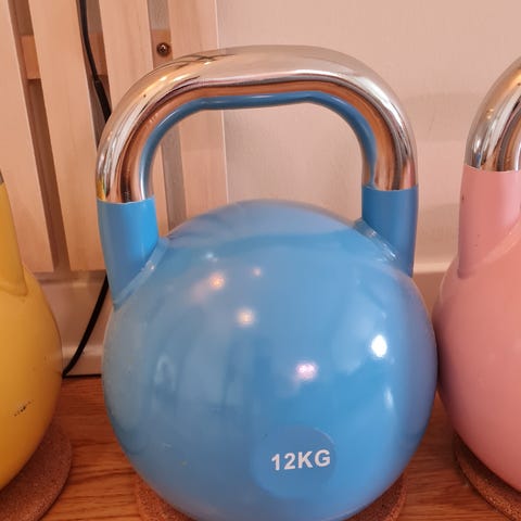Kettlebell på 10 kg i svart farge. Håndtak i metall som gir godt grep ved ulike styrkeøvelser. Egnet til trening av hele kroppen, blant annet sving, markløft, knebøy og deadlift.