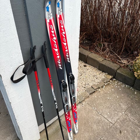 Madshus Redline barneski 100 cm med 70cm staver. Smøreski. Brukt noen få ganger, er nok smøring på de.