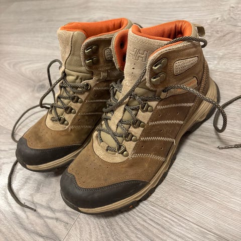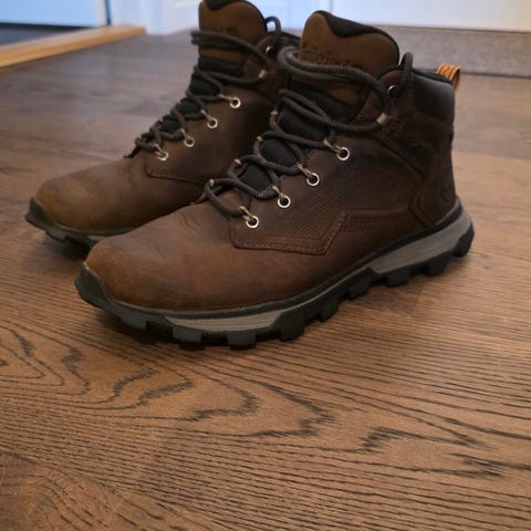 Vintersko i høy modell i burgunder farge, størrelse 40. Skoene har snøring foran og kraftig yttersåle med grovt mønster tilpasset fotturer.