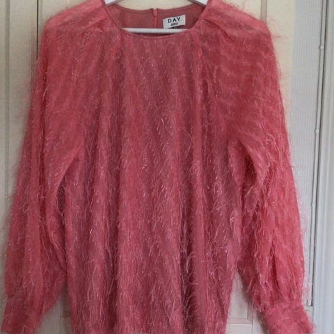 Tynn bluse med lange ermer, rund halskant med V-splitt foran prydet med vakre broderier i samme farge som blusen.