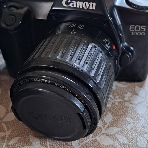 Kameraet er en Canon EOS 1000FN, et solid og lett 35mm speilreflekskamera som er enkelt å bruke både for nybegynnere og viderekomne. Det har både helautomatisk modus og manuelle innstillinger, slik at du kan vokse med kameraet og lære mer underveis.