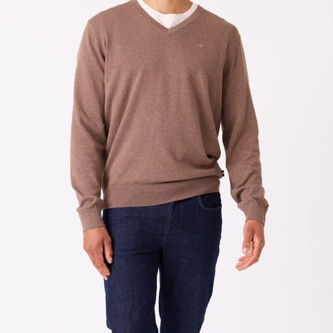 Strukturstrikket genser i 100% økologisk bomull. Genseren har ribbestrikkede vrangborder og en liten logo nede på siden. Klassisk passform.
