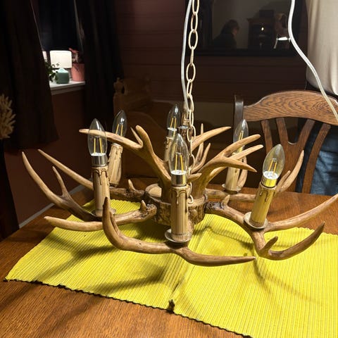 A fantastic faux-antler ceiling lamp from Lampehuset in black.