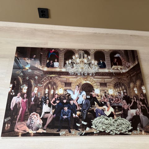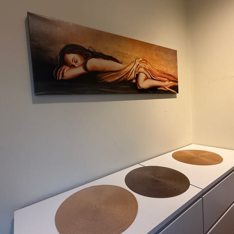 Bildet er 200 cm bredt og 100 cm høyt. Som nytt. Må hentes av kjøper.