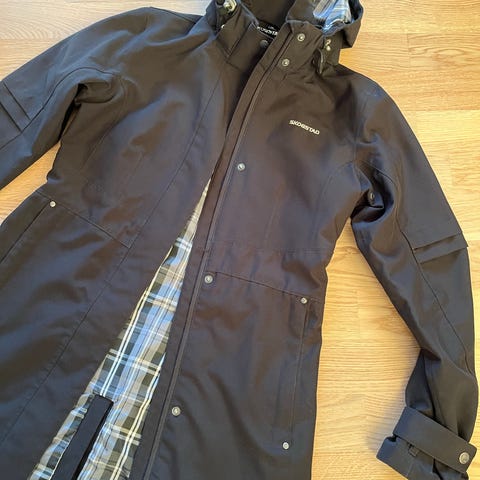 Didriksons Storm System jakke for dame i størrelse 38. Jakken er brun. Den har avtagbar hette, glidelås med knappestolpe foran, brystlommer med glidelås og frontlommer med klaff. Storm System-teknologien er utviklet for å tåle ulike værforhold. Jakken passer som ytterjakke til hverdagsbruk og tur i skiftende værforhold. Glidelås på innsiden slik at man kan feste andre plagg inni. Ingen skader/merker. Fargen vises best på siste bilde.