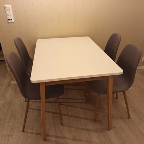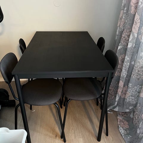 Sort spisebord som nytt,under 2 år har hatt voksduk på hele tiden så det er ingen skader,husker ikke om det var kjøot hos bohus eller fagmøblet,man kan ha ekstra ilagsplate i men usikker om man får tak i det.