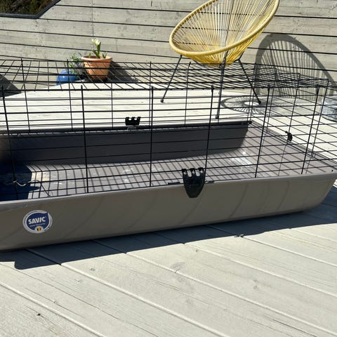Brukt bur tilsalg med vannflaske og 2 plast lommer for høy. Mål 100x43x53