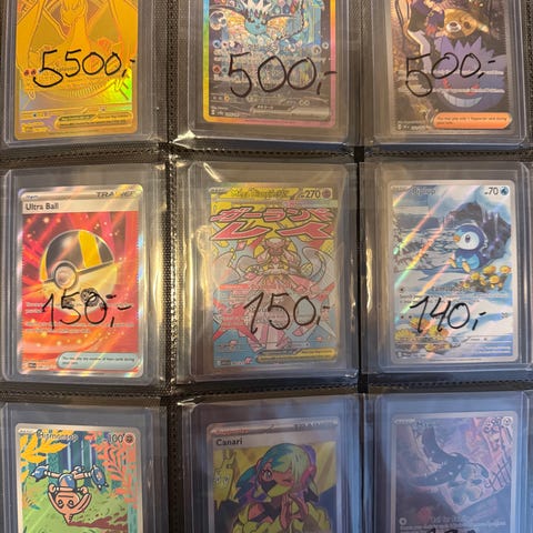 Pokeballs og EX 20,- stk (unntatt Eeveelutions som er noe dyrere) Full Art trainers 30,-
