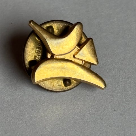 To vintage små pins med fugler på. Usikker på nøyaktig hva slags fugler det er, men ser ut til å være en papegøye og en rovfugl.