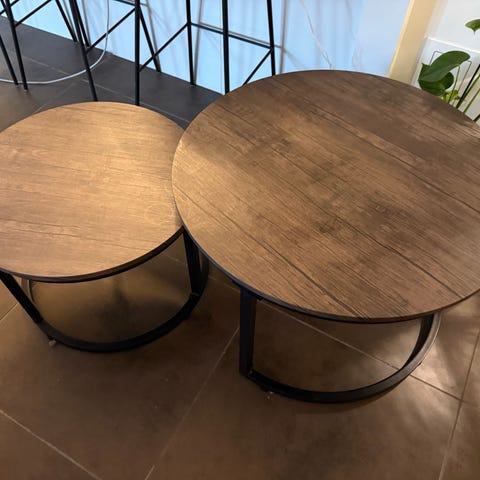 Moderne sofabord hvor det ene bordet delvis kan skyves under det andre