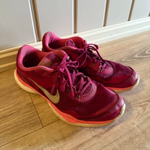 Nike sneakers joggesko i størrelse 40.5. Skoene er i en lys rosa farge med snøring foran. Overdelen har perforeringer i tåpartiet for ventilasjon, og yttersålen er i gummi med mønster for grep. Passer som hverdagssko og til lett fritidsbruk.
