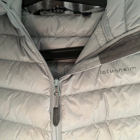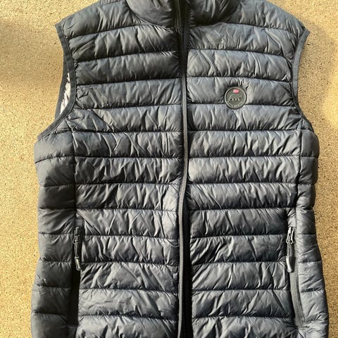 Fin tynn dun vest, mørke blå. Modellen er 173cm og den er litt for kort for ham. Passer nok best til en som er rund 165cm. Ny pris 1500kr.