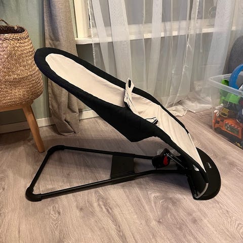 BabyBjörn Balance Soft vippestol i brun tekstil med sort stativ. Vippestolen har ergonomisk utforming som gir støtte til barnets rygg, nakke og hode. Setetrekket er avtagbart og kan vaskes. Stolen kan justeres i flere posisjoner via regulering bak, og kan slås sammen for enklere oppbevaring eller transport. Passer til spedbarn og småbarn innenfor vektgrensen som er angitt av produsenten på produktet.