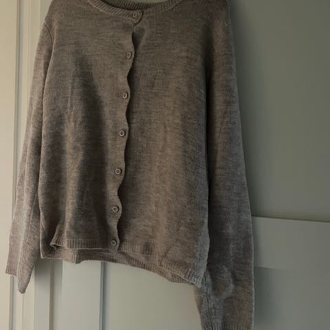 Cardigan i kashmirmiks fra Benetton med perleknapper. Klassisk og tidløs. Pent brukt.