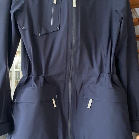 Skogstad regnjakke for dame i størrelse 36. Jakken er svart og laget i polyester med membran og fôr i polyester, som gir vannavvisende og vindtett egenskaper. Modellen er lårlang med hette og hel glidelås skjult bak klaff. Den har frontlommer med klaff og glidelås, samt justeringsmuligheter ved hette og nederkant. Egnet som regntøy til hverdagsbruk og tur i vått vær.