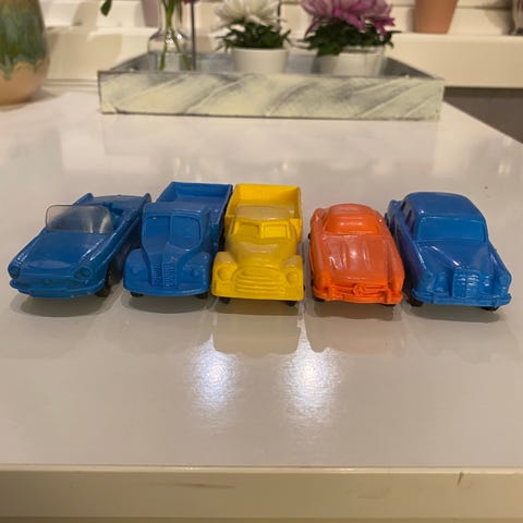 Velbrukte plast lekebiler. Trenger en god vask og litt TLC.