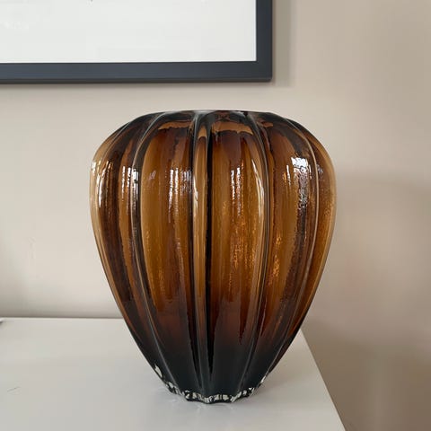 Vase + 3 stk blomster fra Kremmerhuset selges. Vasen er aldri brukt, men lappen er fjernet. Blomstene har fortsatt lapp på. Nypris pr blomst var 159,- pr stk og nypris for vasen var 499,-