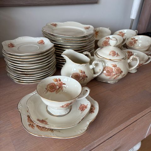 Porsgrund Vega kaffeservise porselen blomsterdekor kremfarget