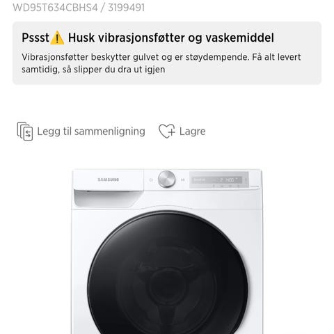 Samsung kombinert vask/tørk vaskemaskin 9 kg vask 6 kg tørk