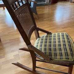 Gyngestol tre med rottingsete og rygg