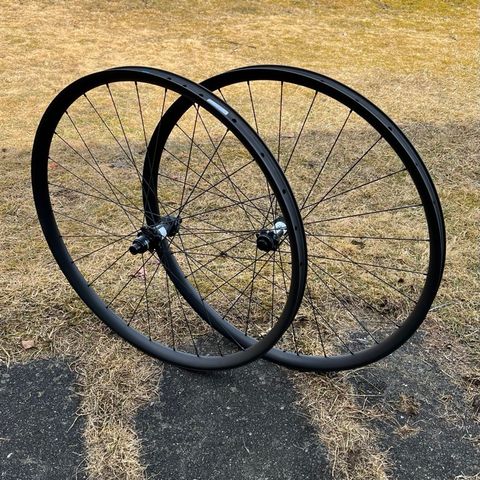 XC-hjul 29" carbon med DTSwiss 240S nav 15x100mm framhjul og 12x142mm bakhjul selges. Hjulene er fine og lette med minimalt bruksmerker, ingen skader eller kast. De ble brukt svært lite, og lagrene ruller godt. 6-bolts bremseskive feste og SramXD boss. Jeg kan sende riktig innpakket med sporing for 129kr eller kan selge med Fiks-Ferdig hvis ønskelig.
