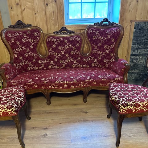 Eldre, fra tidlig 1900 tall, sofa med 2 stoler.