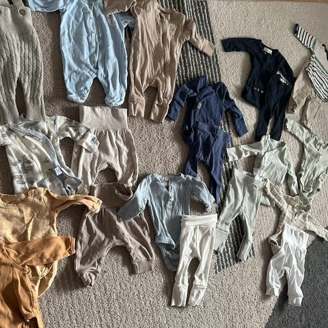 Selger stor klespakke som er brukt til tvillinger, lite brukt og nesten ingen synlige flekker. Bukser, bodyer og noen pysjamaser