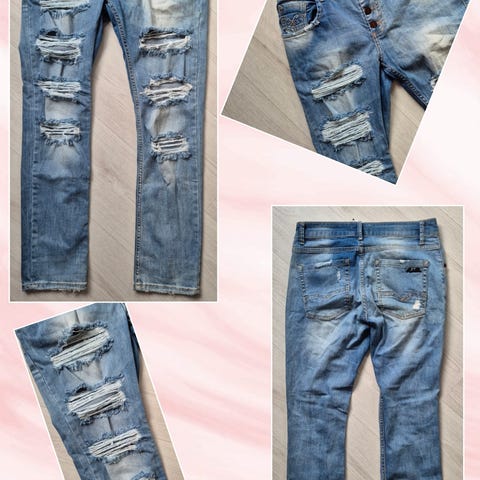 Kule lyseblå jeans med ripped-detaljer. Trendy modell med smal passform som sitter fint på kroppen. Myk og behagelig kvalitet.