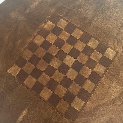 Lite, unikt salongbord med fliser i brunt og beige. Nydelig 70-talls. Messingbeslag på bena.