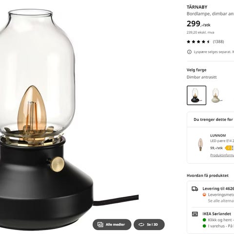 Bordlampe selges grunnet flytting til utlandet.