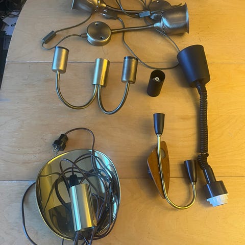 Har 3 stk - gull, grå og messing. enkel og stilren lampesokkel i messingfinish med ledning og støpsel. Perfekt til dekorpærer eller som minimalistisk lampe i vindu, over nattbord eller i lesehjørne.